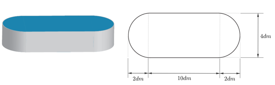 HEUREKA! Poznati usklik kojeg je izrekao Arhimed dok se kupao u kadi i otkrio zakon o prividnom gubitku težine u tekućini. Na slici se nalazi kada i tlocrt baze unutarnjeg dijela kade. Visina kade je 50 cm.